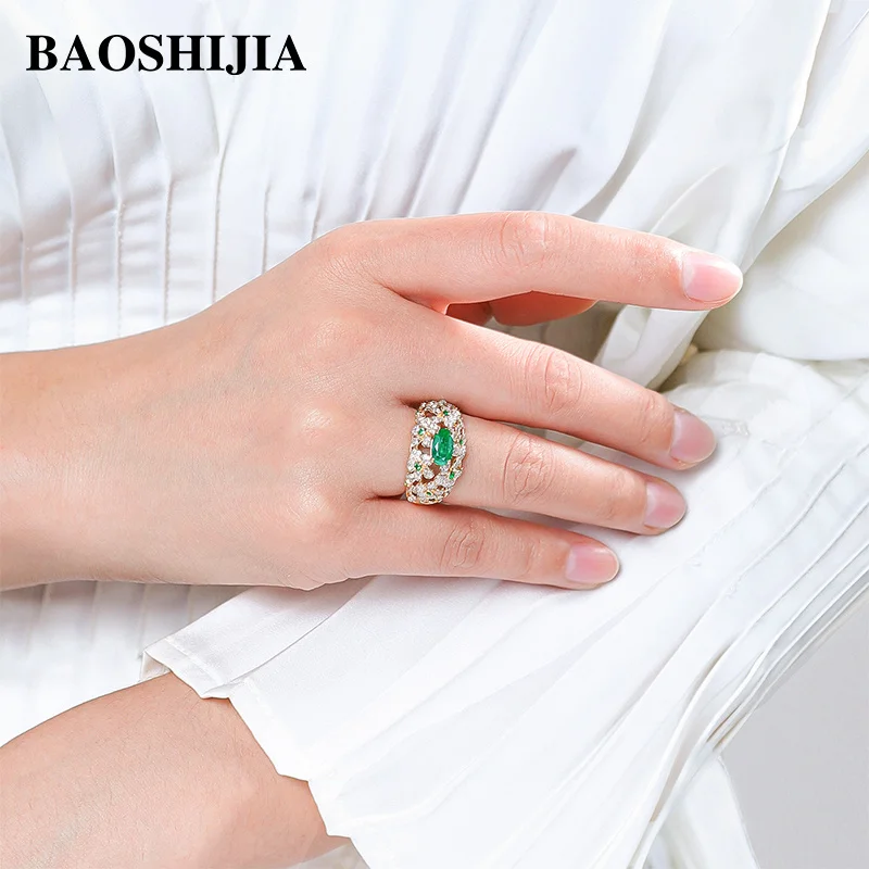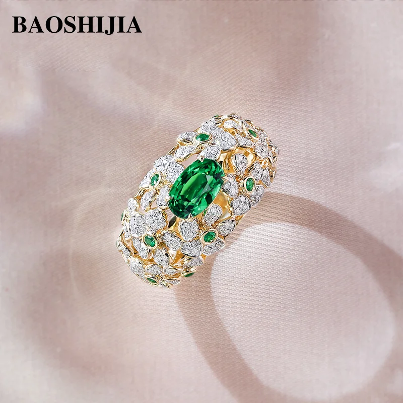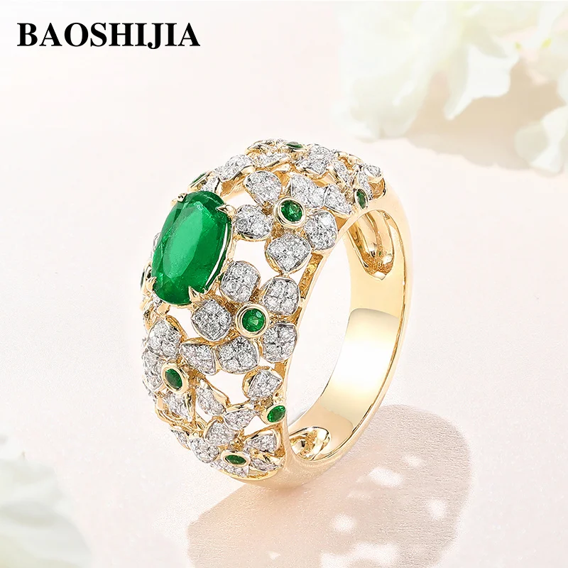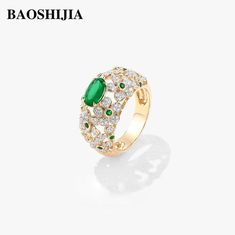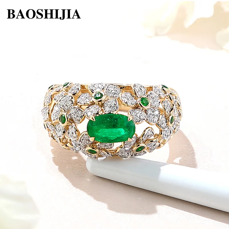 BAOSHIJIA Solid 18K Yellow Gold Ring Women’s Natural Diamonds band Fashion Jewelry Wedding Present Semi Mount Setting Prong Set