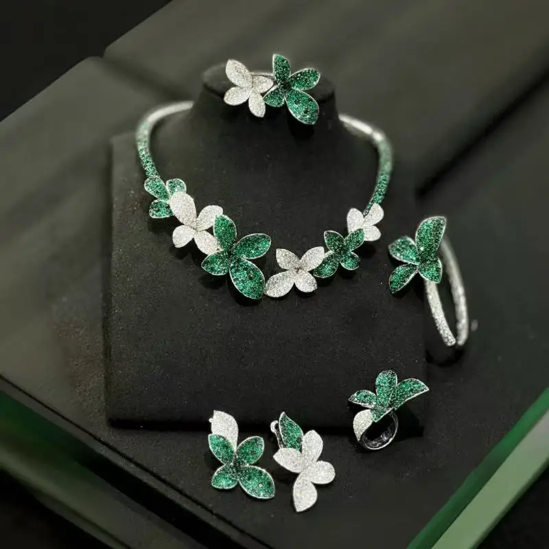 This BELLUX Blossom Series set is a luxurious addition to any wardrobe, featuring a necklace, earrings, ring, and bracelet for a complete look.